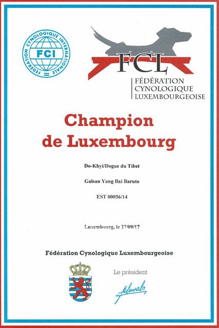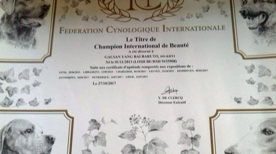 Multi Ch. Galsan Yang Bai Baruto ° 01/11/2013 HD-A ED-0 Belgian Champion - Luxembourg Champion - International Champion - Crufts Qualification 2018